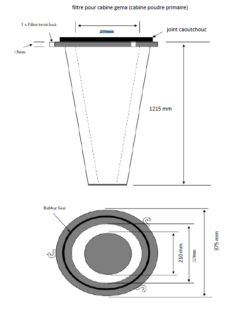 Suite à une reprise d’activité, nous avons été contactées pour fournir des cartouches filtrantes sur une cabine de peinture GEMA. Le client nous a fourni un plan de ses cartouches ainsi que quelques photos.