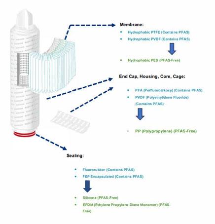 Le PTFE (Polytétrafluoroéthylène) et le PVDF (fluorure de polyvinylidène), largement utilisés dans la filtration, sont également des types de PFAS. Afin de respecter les réglementations et de diminuer les risques environnementaux, l’adoption de matériaux sans PFAS en tant que solutions alternatives est devenue une tendance dominante.