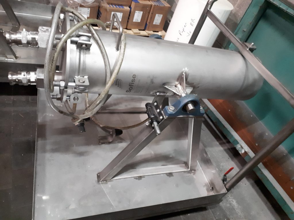 Le système SupaClean se compose de nos cartouches conventionnelles confinées dans deux poches Polyéthylène antistatique. Ainsi, les cartouches et les fluides sont contenus à l’intérieur d’un corps de filtre en INOX 316, qui constitue la cuve de pression nécessaire au process de filtration. Le produit et les filtres sont donc isolés.